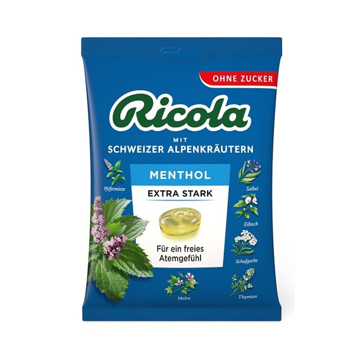Mentolové bonbony podporují normální stav dýchacích cest. Obsahují mentol z máty peprné a směs 13 bylin, která podporuje celkovou harmonii a osvěžení. Mentolové bonbony bez cukru jsou vhodné jak pro každý den, tak i na výlety. Firma Ricola vyrábí bonbony již od roku 1930.