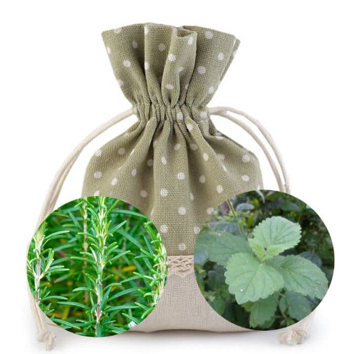 Složení: rozmarýn, meduňka, pytlíček – len, bavlna