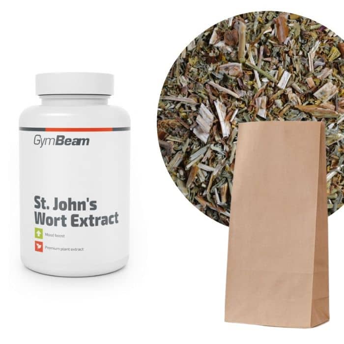 Set obsahuje tři produkty, které jsou baleny zvlášť: třezalka (tinktura nebo kapsle) a mateřídouška.